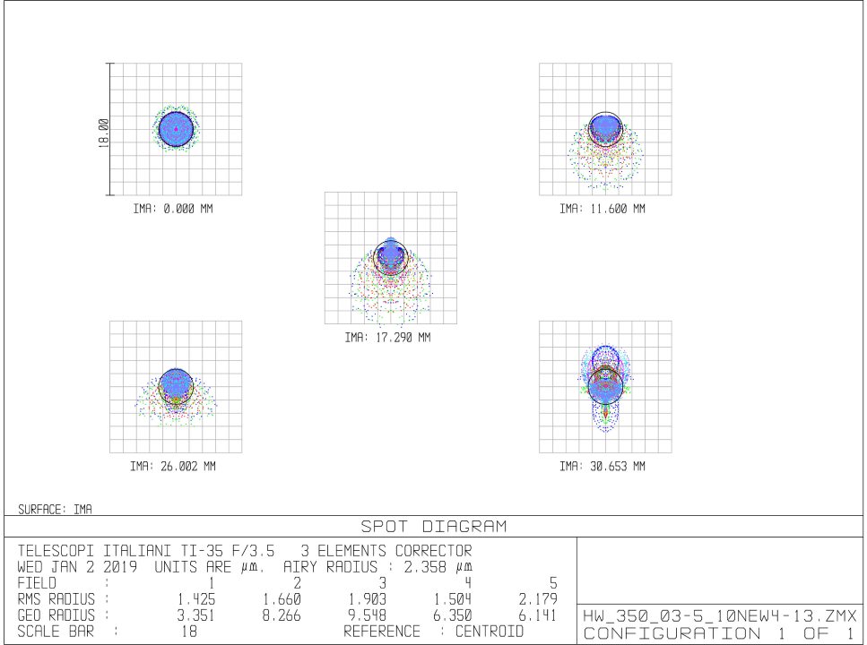 - Spot Diagram RMS Diameter on axis – Poly 400-700 nm: 3.3 micron